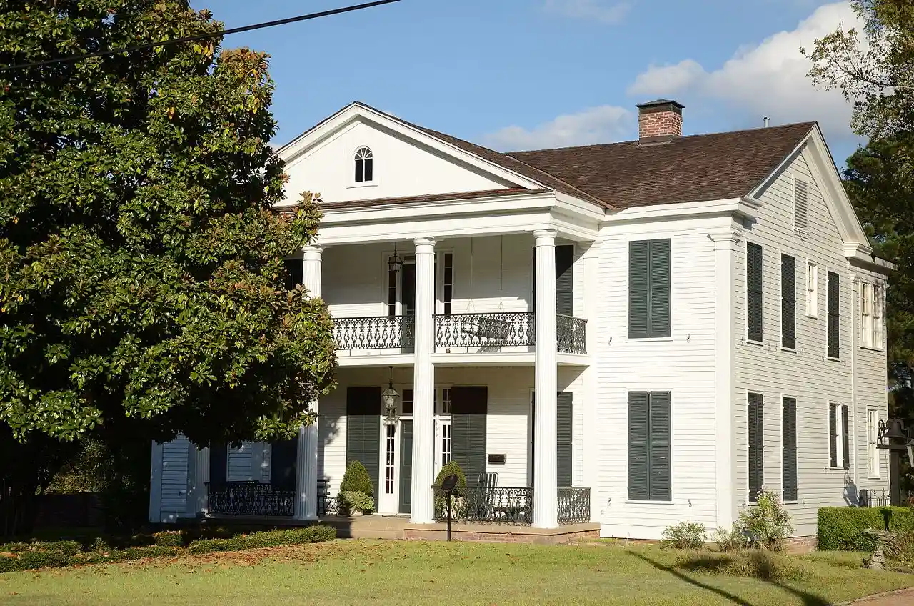 The Benjamin T. Powell House is a historic house at 305 California Avenue in Camden, Arkansas. The two story wood-frame house was built in 1859, and is one a few pre-Civil War cotton-magnate houses to survive in the city. The house has a cypress frame, and features a Classical Revival facade with a front gable supported by four round columns sheltering porches with ornamental iron railings. The house was used as a military headquarters by Union Army forces during the Civil War. Read more on Wikipedia