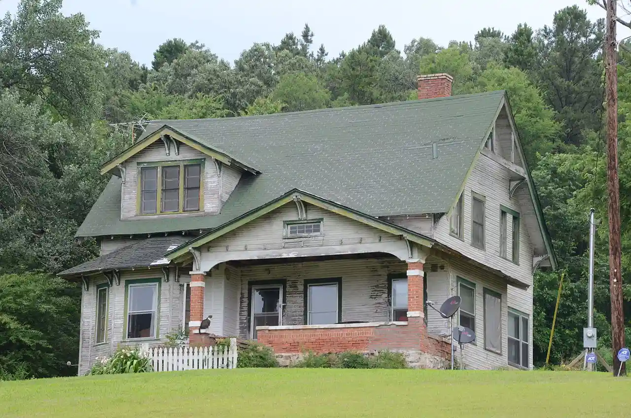 The Camp House is a historic house at 4684 West Arkansas Highway 60 in Aplin, Arkansas. It is a -story wood-frame house, with a gabled roof, weatherboard siding, and a stone foundation. Its roof has deep eaves with applied decorative elements, and exposed rafter ends in the eaves. The front is adorned by a gable dormer, polygonal bay, and porch, all with bracketed gable roofs. The house was built about 1917 for James Camp, and is one of the small community's most distinctive examples of Craftsman architecture. It is also likely that the house was built from a kit Mr. Camp purchased from Sears, Roebuck. Read more on Wikipedia