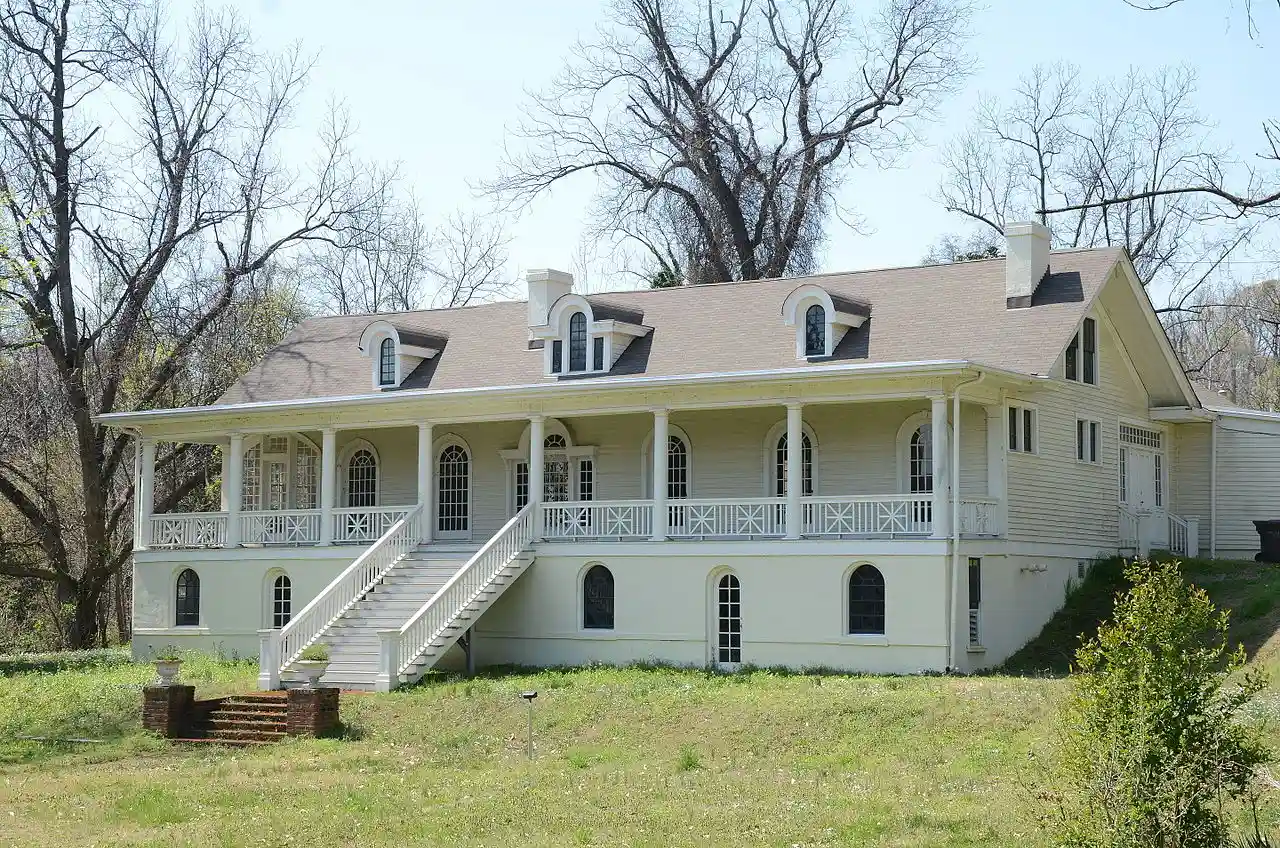 Estevan Hall is a historic house at 653 South Biscoe Street in Helena, Arkansas. With a construction history estimated to begin in the late 1820s, it is probably the oldest building in Phillips County, Arkansas, and has been in the hands of the Hanks family, early settlers of Helena, throughout. It is an architecturally eclectic structure, the main style of which is derived from alterations in the 1870s which had a strong influence of the French architecture of New Orleans. It is set high on a ridge overlooking the Mississippi River, and has an expansive veranda typical of plantation houses further south. Its interior has been little altered since renovations and modernizations in 1919. Read more on Wikipedia