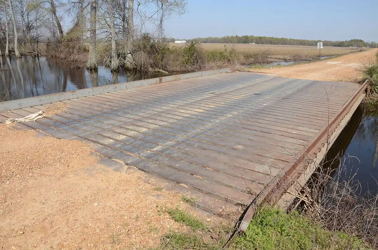 The Little Cypress Creek Brook is a historic bridge in rural western Phillips County, Arkansas. Located south of the hamlet of Postelle, it carries County Road 600 over Little Cypress Creek, west of Arkansas Highway 39. It consists of two spans of an aluminum-beam substructure, resting on concrete abutments and piers, with textured metal deck plating as the road surface. The bridge was built in 1942, and was probably designed by the engineering staff of the Arkansas State Highway Commission. It is a well-preserved example of a World War II-era bridge. Read more on Wikipedia