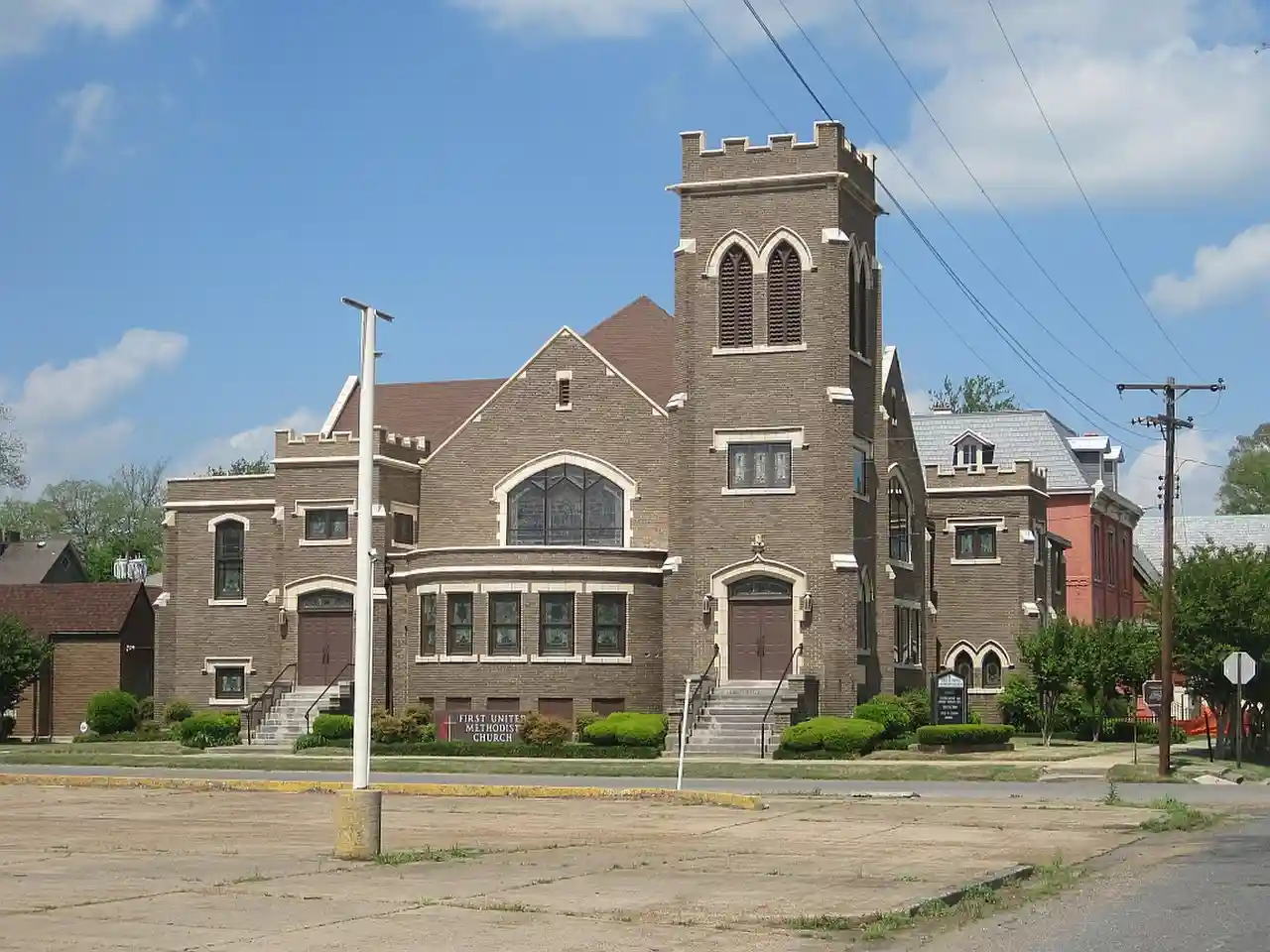 The Perry Street Historic District encompasses a fine collection of early-20th century architecture in Helena–West Helena, Arkansas. It includes fifteen buildings, arrayed on the single city blocks stretching south and west from the junction of Perry and Pecan Streets. The buildings on these blocks represent a cross-section of private and public architecture spanning 1880–1930, including two churches, the only synagogue in Phillips County (the 1913 Temple Bethel), and the county's oldest public building, the 1879 Helena Library and Museum. Most of the residences in the district were built between 1900 and the 1920s. Although most of the residential architecture is Arts and Crafts in style, it includes two fine Queen Anne Victorians: the Moore House at 608 Perry (built 1900) and the William Nicholas Straub House at 531 Perry (also built 1900). Read more on Wikipedia