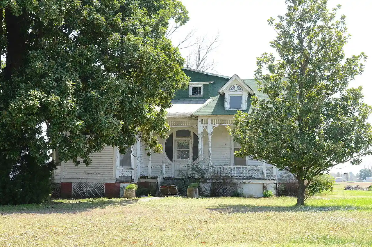 The Richardson-Turner House is a historic house at 1469 Arkansas Highway 1 in Lexa, Arkansas. It is a -story wood-frame structure, built in 1894 by Dr. Willis Moss Richardson. It is one of the most elaborate rural Queen Anne structures in Phillips County, with asymmetric massing, decorative brackets in the eaves, fish-scale shingles on the exterior, and an elaborate porch with a beaded spindlework balustrade and turned columns. The house originally had a tower, but this was removed in the 1930s, and the attic space was enlarged for living space in the 1940s. Read more on Wikipedia