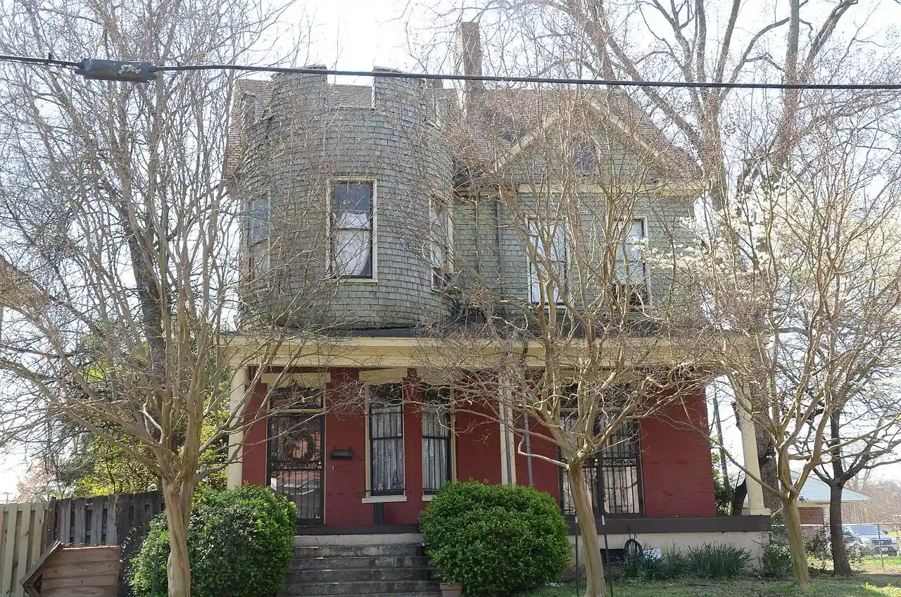 The William Nicholas Straub House is a historic house at 531 Perry Street in Helena, Arkansas. It is a stylistically eclectic -story structure, built in 1900 for William Nicholas Straub, a prominent local merchant. The house's main stylistic elements come from the Colonial Revival and the Shingle style, both of which were popular at the time. The house has a first floor finished in painted brick, and its upper floors are clad in shingles. The main facade has a single-story porch across its width, supported by three Ionic columns. The entrance, on the left side, has a single door with a large pane of glass, and is topped by a transom window. On the right side is a two-sided projecting bay section. The house's most prominent exterior feature is a crenellated tower which rises above the entry. Read more on Wikipedia