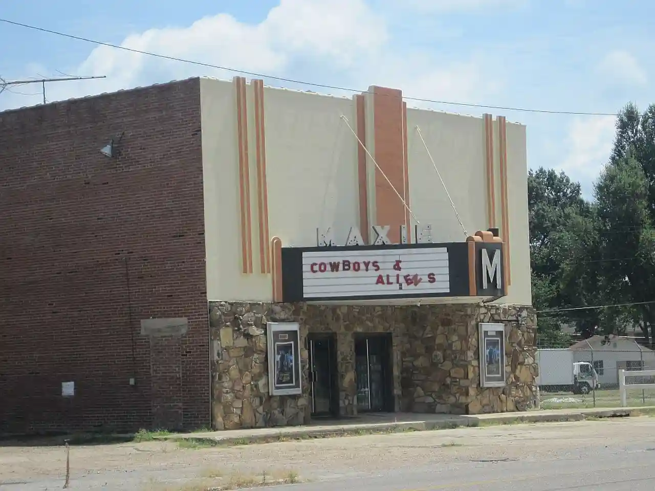 The Maxie Theatre was a historic movie theatre at 136 Arkansas Highway 463 South in Trumann, Arkansas. It is a single-screen theatre, housed in a large Art Deco structure built in 1948-9 by Zell Jaynes. At the time of its opening it featured the latest in amenities, including air conditioning, upholstered seats, and a fancy curtain to cover the screen. It also had a purpose-built segregated seating area for African-American in the balcony, with separate entrance, ticketing, and concession facilities. Until its closure in 2012 the theatre was one of oldest continuously-operating businesses in Trumann and was the town's only theatre. Read more on Wikipedia