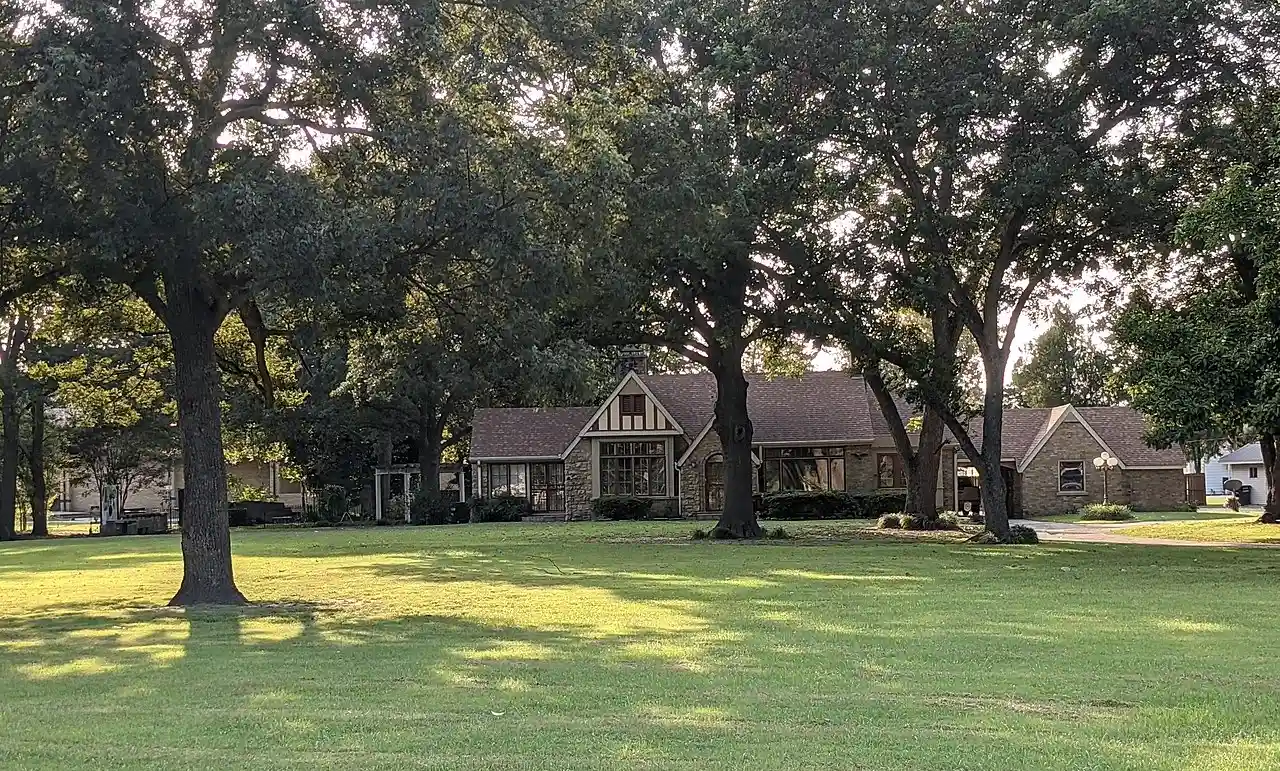 The Poinsett Lumber and Manufacturing Company Manager's House, also known locally as the Singer Mansion, is a historic house at 512 Poinsett Avenue in Trumann, Arkansas. It is a single-story structure, with a varied roof line, and multiple exterior sheathing materials, including brick and stucco with false half-timbering typical of the Tudor Revival style, and recently applied modern siding. The house was designed by Edwin B. Phillips and built in 1935 for the Poinsett Lumber Company to house its senior on-site manager. It is, despite the modern siding, the only Tudor Revival building in Trumann, and the only surviving residence associated with the Poinsett Lumber Company, a major area employer in the first half of the 20th century. Read more on Wikipedia