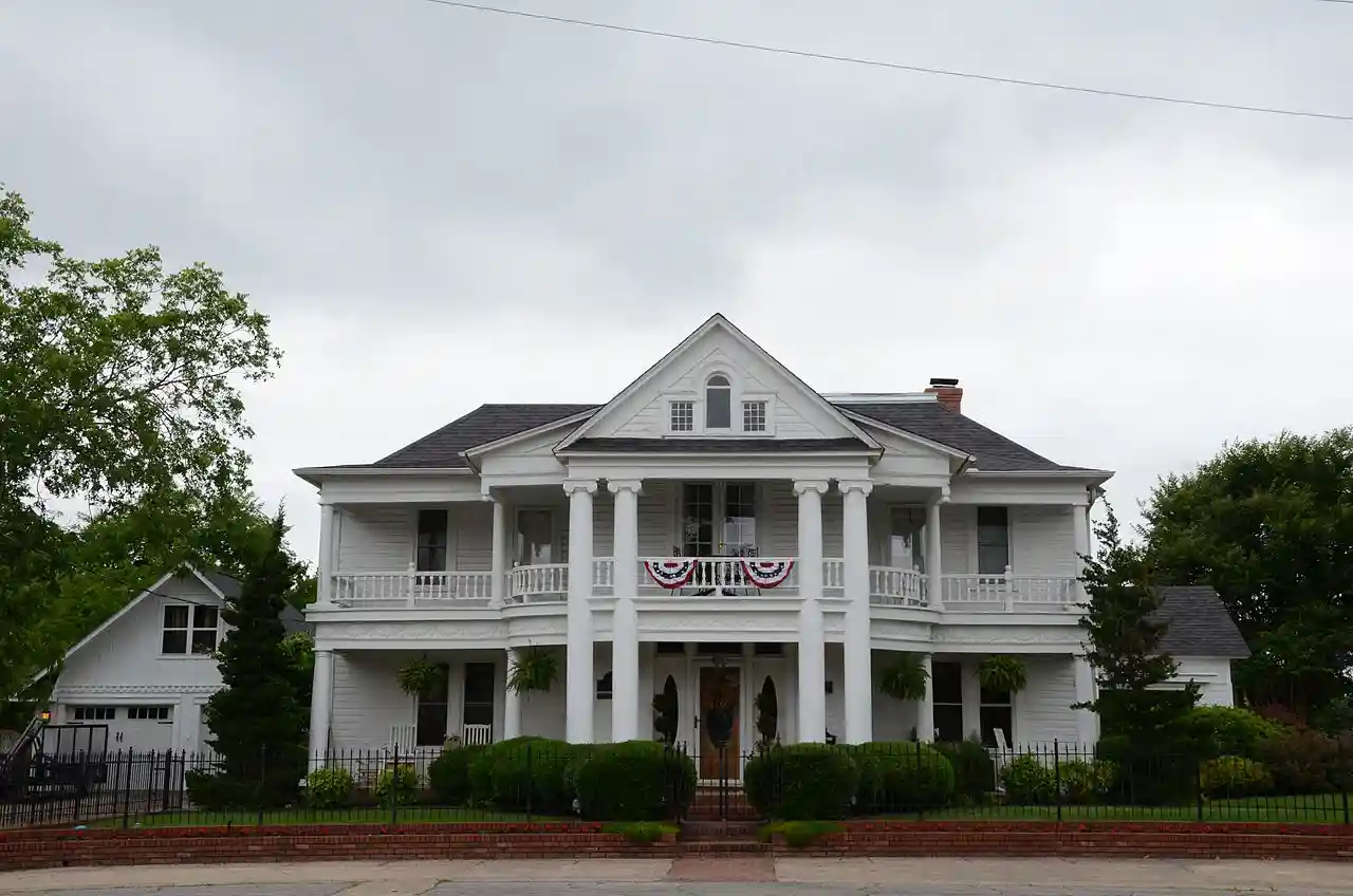 The Judge Benjamin Shaver House is a historic house at 701 12th Street in Mena, Arkansas. It is a -story wood-frame structure, with a hip roof that projects over a two-story porch. There are further stepped projectings beyond this, culminating in an gable section supported by Ionic columns, with a Palladian window in the pedimented gable end. The house was built in 1896, two years after Mena was incorporated by Benjamin Shaver, a prominent local lawyer and judge. The building is further notable for its association with his daughter Dorothy, who parlayed an early career as a dollmaker into becoming CEO of Lord & Taylor. Read more on Wikipedia