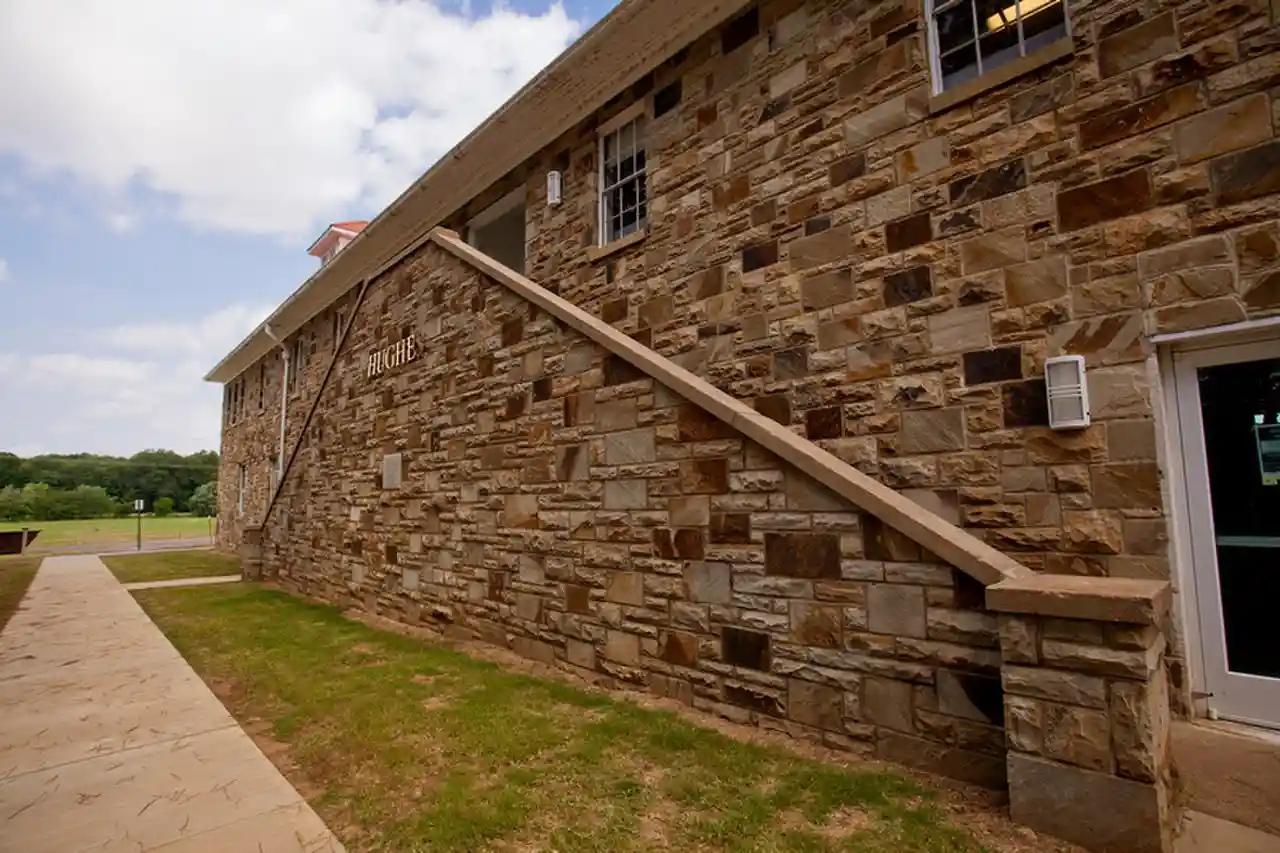 Hughes Hall is a historic dormitory at the corner of West M and North Glenwood Streets, on the campus of Arkansas Tech University in Russellville, Arkansas. It is a two-story stone building in a U-shaped plan, with a hip roof and stone foundation. The roof of its front facade is pierced by two small hip-roofed dormers. It was built as a classroom building in 1940, with funding support from the Works Progress Administration. In 2009, it was converted into a dormitory. Read more on Wikipedia