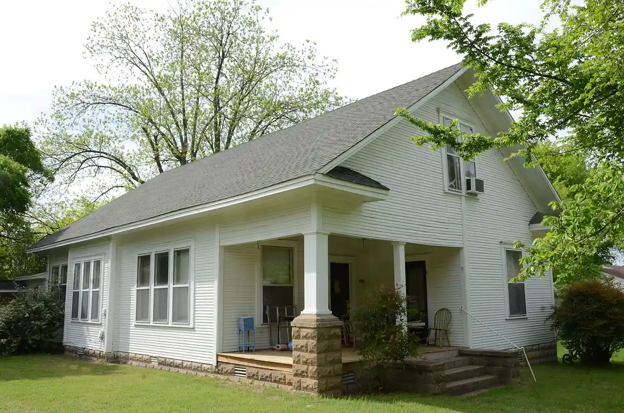 The Threlkeld House is a historic house at 1301 North Boston Avenue in Russellville, Arkansas. It is a -story wood-frame structure, with a gable roof and weatherboard siding. At one corner, a recessed porch is supported by square posts, the corner one mounted on a pier of rusticated concrete blocks. The house was built in 1914, and is unusual as an early vernacular ("Plain Traditional") house in a neighborhood of later houses featuring other styles. The house was owned until 1995 by members of the Threlkeld family. Read more on Wikipedia