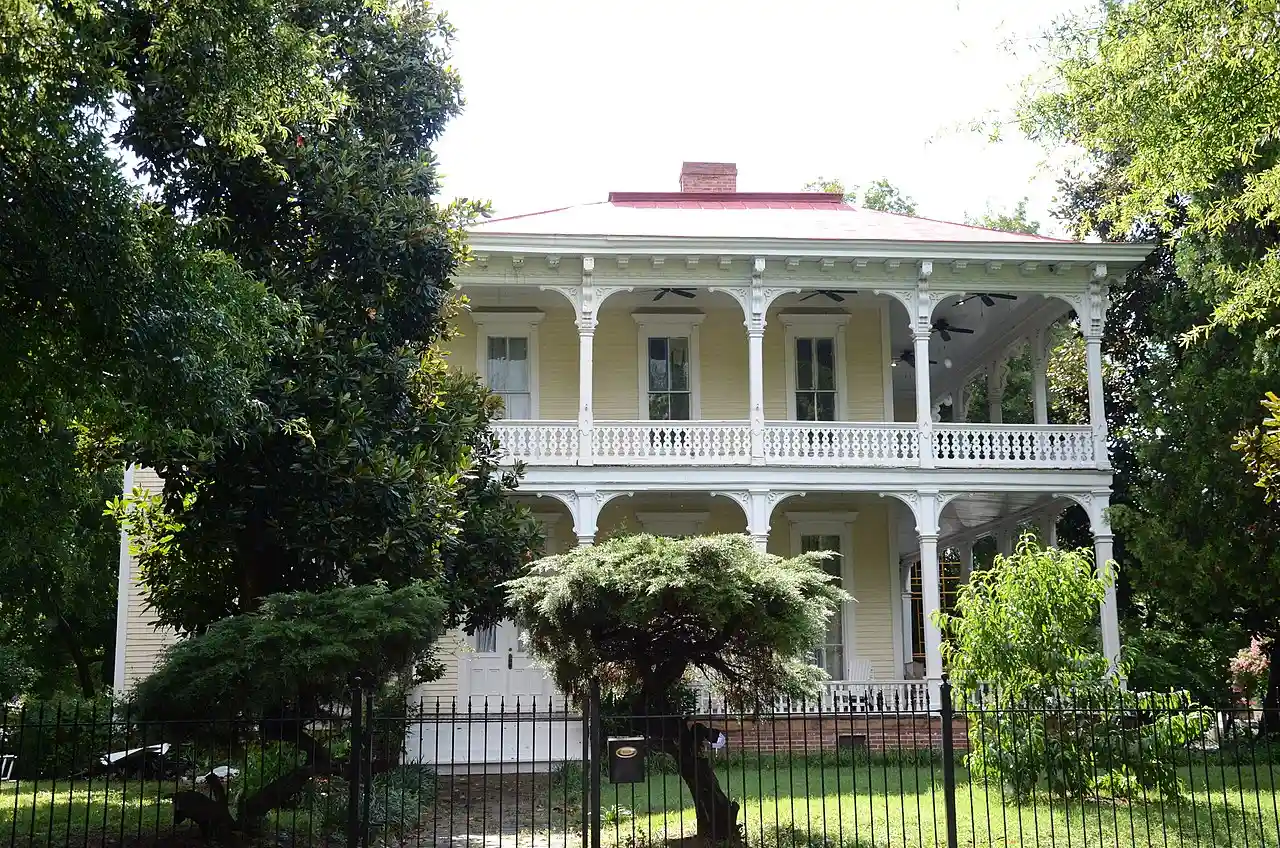 The Augustus Garland House is a historic house at 1404 Scott Street in Little Rock, Arkansas. It is a two-story wood-frame structure, with a truncated hip roof, weatherboard siding, and brick foundation. It has an elaborately decorated two-story front porch, featuring bracketed square columns, low jigsawn balustrades, and a modillioned and dentillated cornice. It was built in 1873 for Augustus Garland, a prominent local lawyer who served as Governor of Arkansas, United States Attorney General, and United States Senator. Read more on Wikipedia