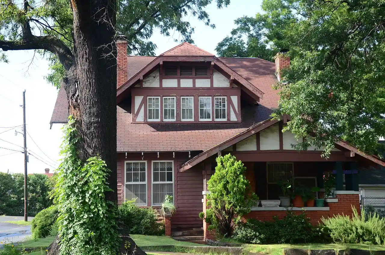 The Beyerlein House is a historic house at 412 W. 14th St. in Little Rock, Arkansas, USA. It is a 1½-story wood-frame structure, with a clipped-gable roof and a combination of weatherboard siding on the first floor, and half-timbered stucco in the gables. A porch projects from the right side of the front, with a low brick balcony and brick piers supporting squat posts, that support the gabled roof. The building's gables have exposed rafter tails in the Craftsman style. The house was built in 1917 to a design by Charles L. Thompson. Read more on Wikipedia