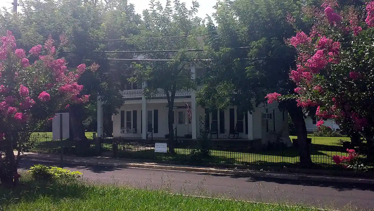 The Anthony Luna House is a historic house at the southwest corner of Main and Spring Streets in Marshall, Arkansas. It is a two-story wood-frame structure, with an L-shaped plan, covered by a cross-gable roof, weatherboard siding, and resting on a stone foundation. Its front facade is covered by a two-story porch, supported by square columns, and featuring an intricate jigsawn balustrade. There are two front-facing gable dormers, which, instead of windows, have a star-in-circle design in the gable. The house was built in 1891 for Anthony Luna, then the sheriff of Searcy County. Read more on Wikipedia