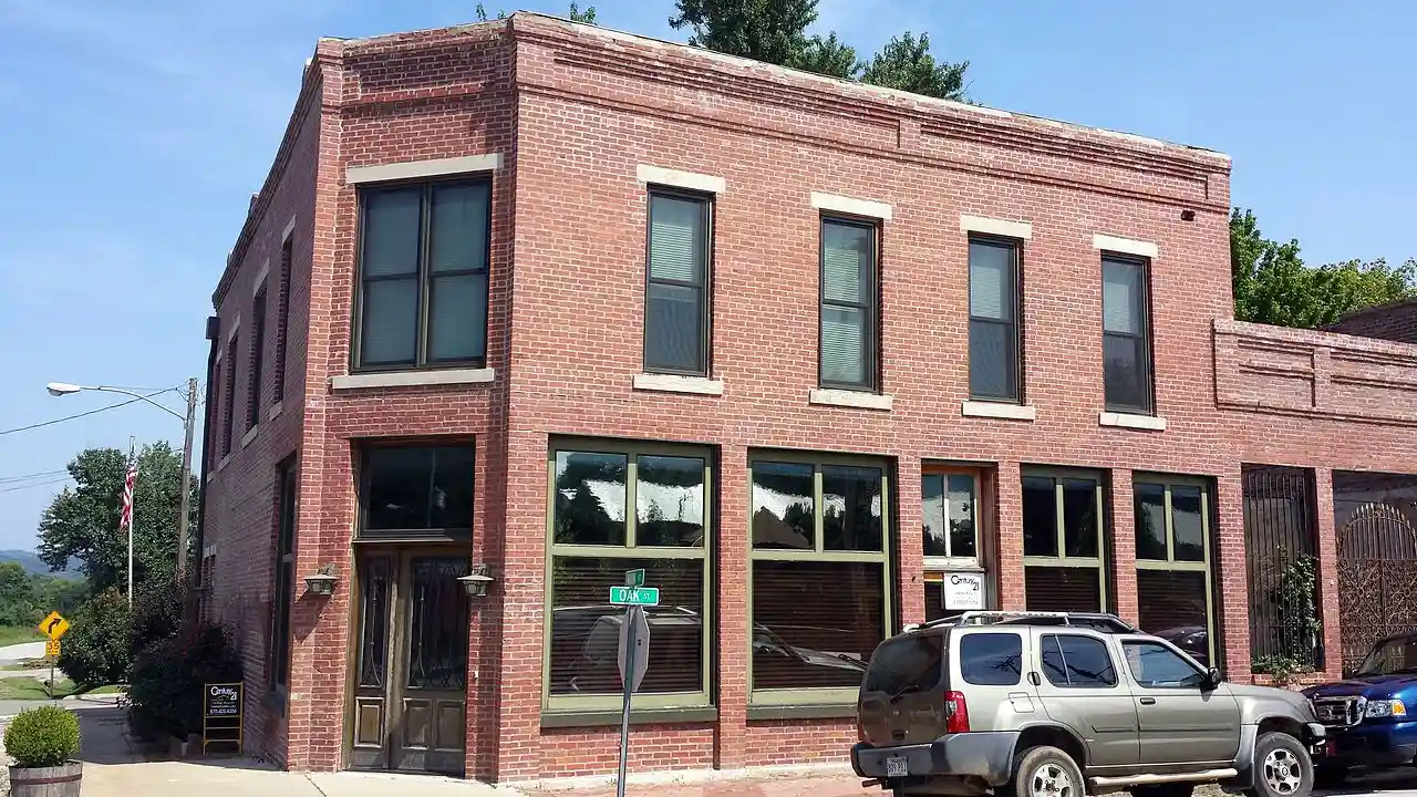 The Meek Building, also known as the Hogg Building, is a historic commercial building at Main and Oak Streets in Leslie, Arkansas. It is a two-story brick building, with a flat roof obscured by a parapet. Its main entrance is in an angled section at the street corner, with a second store entrance facing Oak Street. Built about 1907, it is one of the oldest commercial buildings in the city, and has long been a local landmark, first housing the grocery of Roy Meek and then the meat shop of G. W. Hogg. Read more on Wikipedia