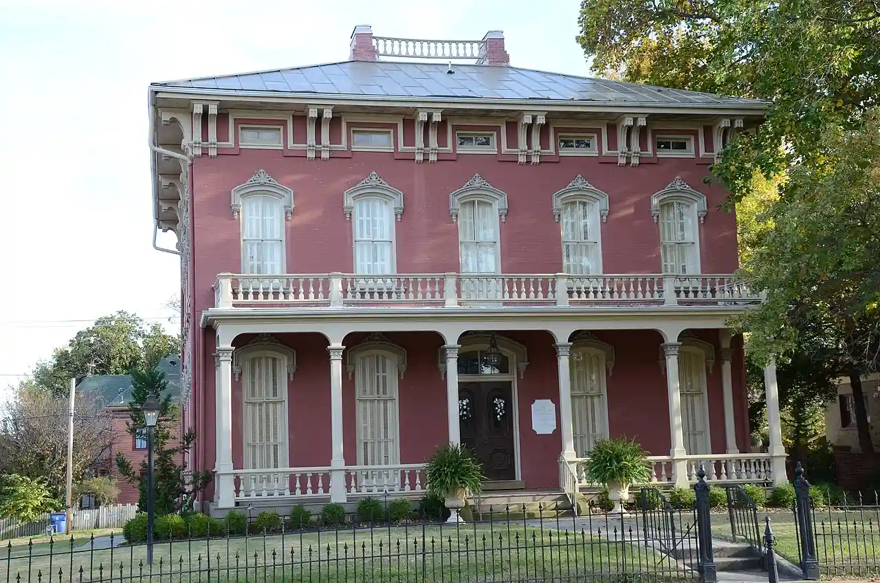 The Bonneville House is a historic house at 318 North 7th Street in Fort Smith, Arkansas. It is a two-story brick structure, with a metal hip roof and a brick foundation. Built in 1880, its styling is predominantly Second Empire, with elaborate window hoods, heavy paired brackets in the eaves, and a full-width porch with turned balusters and posts with finely-detailed capitals. In addition to its locally distinctive architecture, the house is historically significant as the home of explorer Benjamin Bonneville. Read more on Wikipedia