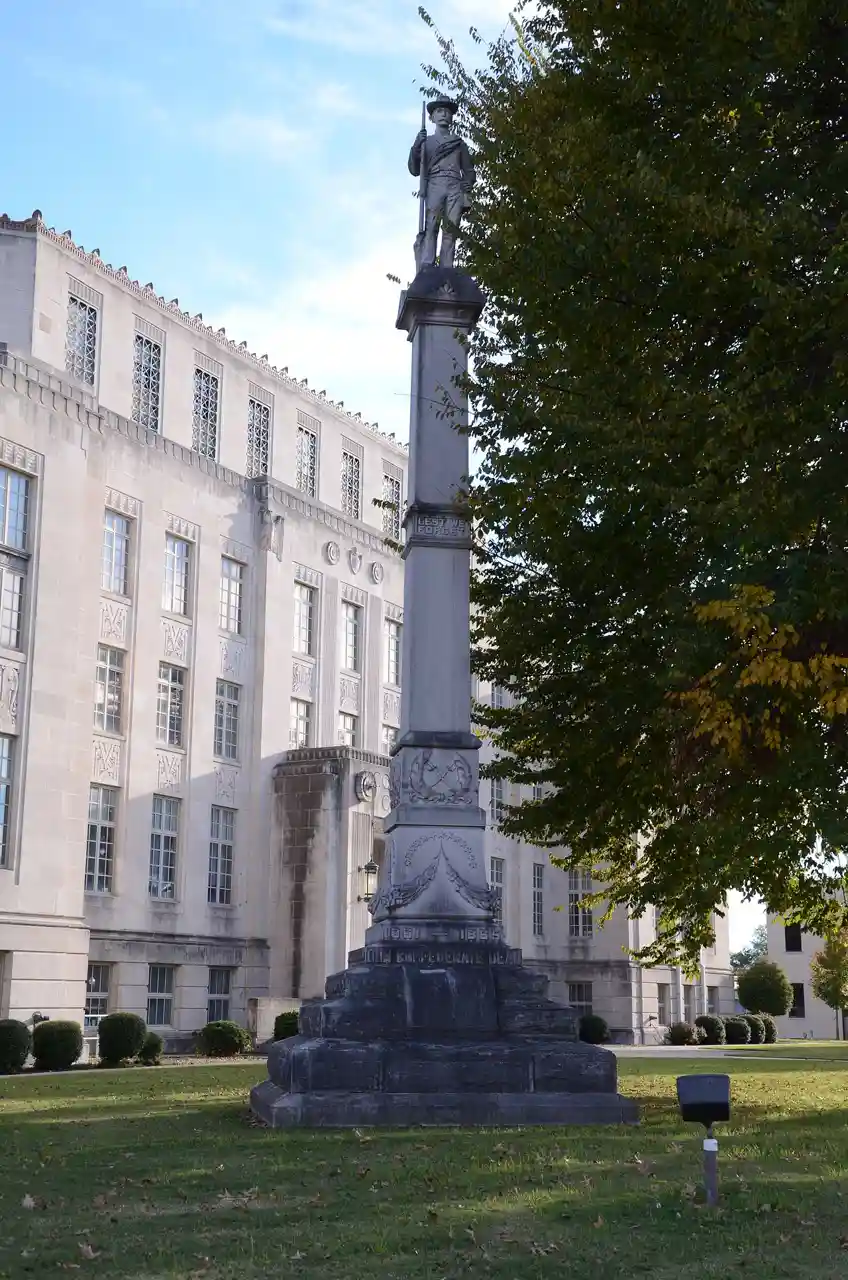 The Ft. Smith Confederate Monument stands on the grounds of the Sebastian County Courthouse at the junction of 6th and Rogers Streets in Fort Smith, Arkansas. The statue depicts a Confederate Army soldier, standing facing north, holding the upper stock of his rifle, which is grounded. The sculpture is in height, and is mounted on a square columnar pedestal over tall. The monument was placed in 1903 with funding raised by the local chapter of the Daughters of the Confederacy. An earlier Confederate memorial, placed at Fort Smith National Cemetery, was destroyed by a tornado, and the federal government objected to the placement of this memorial there without alterations to also commemorate the Union dead. The city granted permission for its placement at its current location. Read more on Wikipedia