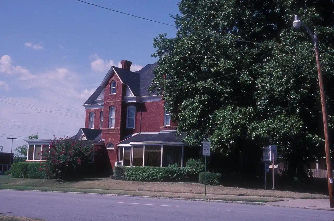 The James Sparks House is a historic house at 201 North 14th Street in Fort Smith, Arkansas. It is a -story brick structure, with a round three-story tower at one corner, around which a wraparound porch extends. It features Romanesque segmented-arch and round-arch windows, and chimneys with decorative corbelled tops. The interior features high-quality woodwork original to the house's c. 1887 construction. It was built by James M. Sparks, a prominent local businessman who was the son of an Irish immigrant. The house was carefully restored in the 20th century. Read more on Wikipedia