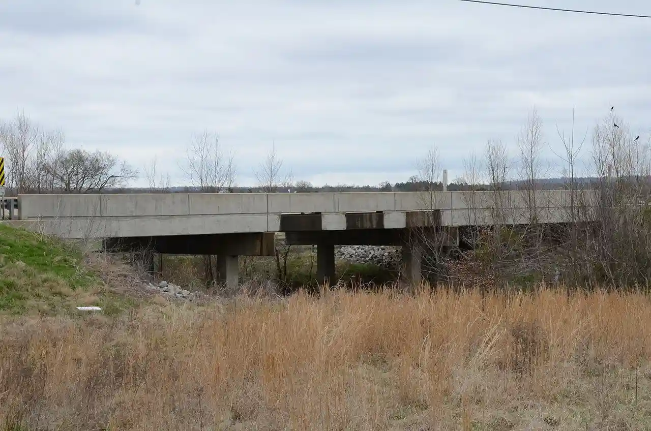 The State Highway 96 Bridge is a modern steel girder bridge with a concrete deck, carrying Arkansas Highway 96 across Vache Grass Creek east of Greenwood, Arkansas. It is a replacement for a historic steel pony truss bridge, built in 1938. The historic bridge was listed on the National Register of Historic Places in 1995. Read more on Wikipedia