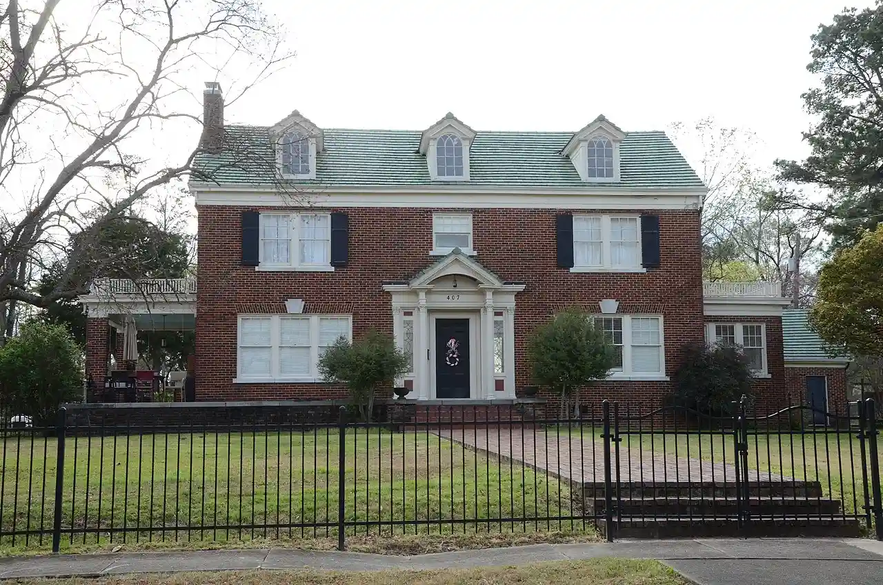 The Bishop Brookes House is a historic house at 407 North 6th Street in De Queen, Arkansas. It is a -story brick structure, built between 1922 and 1928 by Bishop Brookes, Sr., the proprietor of the locally prominent Brookes Drug Store. The house is an excellent local example of Colonial Revival architecture, with a symmetrical facade, and a center entry with portico supported by Corinthian columns. The house remained in the Brookes family until 1995. Read more on Wikipedia