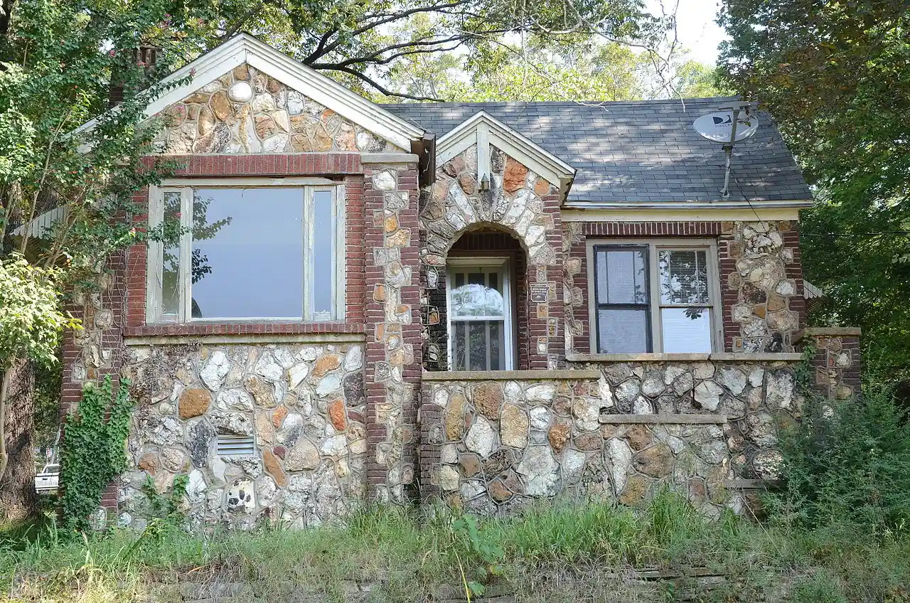 The Carrie Tucker House is a historic house on the north side of East Main Street (United States Routes 62/63), east of Echo Lane in Hardy, Arkansas. It is a single story structure, with a cross-gable roof, and is fashioned out of native rough-cut stone in a vernacular rendition of Tudor Revival styling. The stone is laid in a random uncoursed manner, and dark-colored brick is used at the corners and as trim around the doors and windows, laid as quoining at the corners. The house was built in the late 1920s by Dolph Lane for Carrie Tucker, and is a well-preserved example of vernacular Tudor Revival styling in the city. Read more on Wikipedia