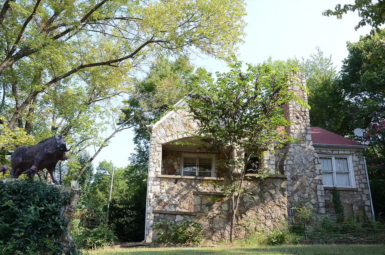 The Sherman Bates House is a historic house at the northeast corner of Echo Lane and United States Route 63 in Hardy, Arkansas. It is a -story fieldstone structure with vernacular Tudor Revival styling. Its prominent features include a fieldstone chimney on the right side of the main facade, and a projecting stone porch on the left. The corners of the chimney and porch are fitted with carefully cut stones. The house was built in 1940 by Sherman Bates, owner of a local bulk fuel oil business. Bates owned the house until he enlisted in World War II; the house's subsequent owners were also prominent local businessmen. Read more on Wikipedia