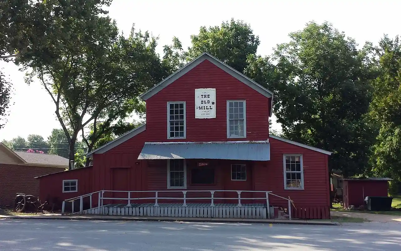 Brewer's Mill is a historic industrial facility on Arkansas Highway 66, just west of the central business district of Mountain View, Arkansas. It is a two-story wood-frame structure with flanking single-story wings, finished in weatherboard and a metal roof. Built in 1915, it is the only surviving industrial building of its type in Stone County. Francis Brewer built it as a grist mill, a function to which it was restored in the 1980s. Read more on Wikipedia
