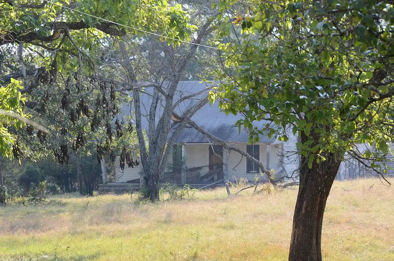 The Owen Martin House is a historic house on Arkansas Highway 14 in Marcella, Arkansas. Situated on a relatively open field west of the highway (screened by another property in front of it), it is a single-story wood-frame structure, in a double-pen dogtrot plan, with a side-gable roof and weatherboard siding. A shed-roof porch extends across the east-facing front, supported by square posts, and a cross-gabled ell extends west from the rear of the southern pen. The house was built in about 1920, illustrating the persistence of the traditional form well into the 20th century. Read more on Wikipedia