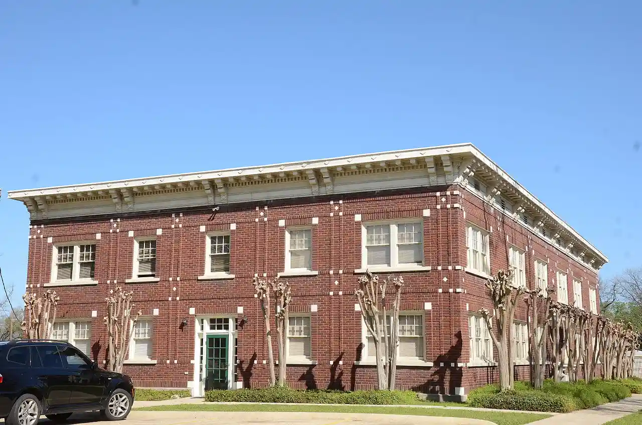 The El Dorado Apartments in El Dorado, Arkansas are a historic apartment house at 420 Wilson Place. The two story brick and limestone building was designed by Louisiana architect Cheshire Peyton, and built in 1926 in response to the discovery of oil in the area and the ensuing economic boom. It houses 24 small efficiency units, designed for use by the transient but wealthier workers and managers of the oil-related economy. The building has limestone window sills, and rows of brick-inlaid limestone squares between the windows. The cornice of the flat roof is decorated with brick dentil moulding and modillions. Read more on Wikipedia