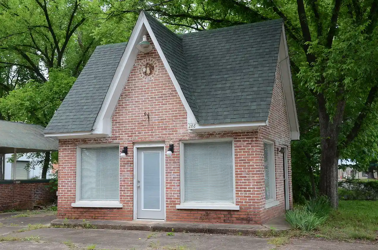 The Walter Patterson Filling Station is a historic automotive service station building on United States Route 65 in central Clinton, Arkansas. It is a small single-story brick building, with a steeply pitched gable roof. The front of the building is symmetrical, with a central entrance flanked by square single-pane display windows, and a cross-gable above the entrance. Built in 1936, it is the only gas station from that period to survive in the city, and is a good example of commercial English Revival architecture. Read more on Wikipedia