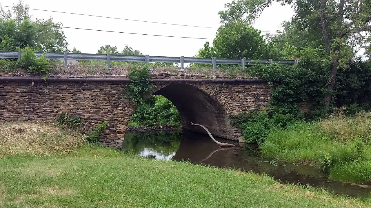 The Goff Farm Stone Bridge is a historic bridge in eastern Fayetteville, Arkansas. It carries Goff Farm Road (County Road 170) across an unnamed creek just north of Stonebridge Meadows Golf Club. The bridge is a single-span stone arch with a span of and a total bridge length of . The bridge's builder is unknown, and its design suggests it was built circa 1860, when the road it carries was a major east–west thoroughfare connecting Fayetteville and Huntsville. It is believed to be the oldest masonry bridge in the state, and is one of the state's small number of surviving 19th-century stone bridges. Read more on Wikipedia