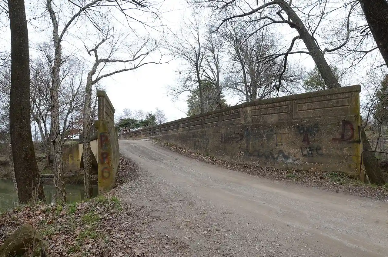The Highway B-29 Bridge is a historic bridge in Prairie Grove, Arkansas. It is a single-span concrete arch bridge, carrying Washington County Route 623 across the Illinois River. The arch has a span of , and the total structure length is . Its deck is wide, and the bridge is typically above the water. Built in 1923, the bridge is one of the first built in the county by the Luten Bridge Company, which used an innovative technique involving metal rings (polished for visual effect on this bridge) that reduced the amount of material required for the structure. Read more on Wikipedia