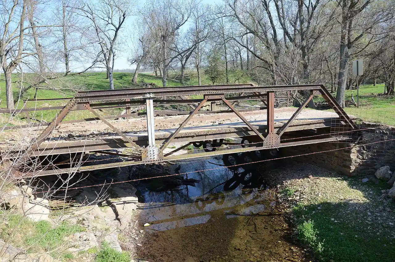 The Rennic Road Bridge is a single-span Warren truss bridge in Washington County, Arkansas. It historically carried Rennic Road (County Road 6) across an unnamed creek in a rural part of the county about northeast of the hamlet of Cincinnati, Arkansas, but has recently been bypassed, and stands next to the modern bridge. The bridge has a span of and a total length of . It was built c. 1915, probably replacing a bridge built around the time the road was laid out c. 1880. The steel for the trusses came from the Cambria Steel Company of Johnstown, Pennsylvania; the builder is not known. Read more on Wikipedia