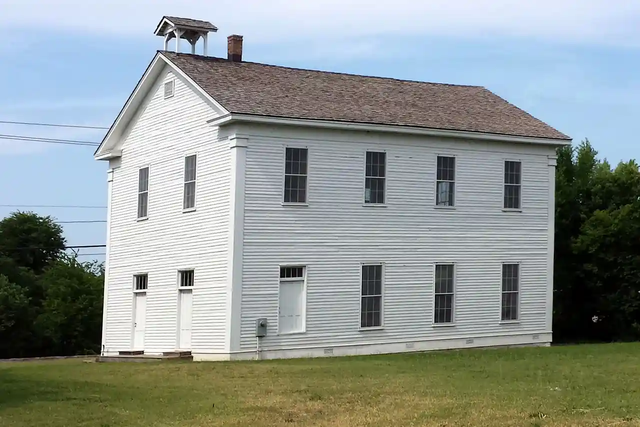 Shiloh Church is a historic church at Huntsville and Main Streets in Springdale, Arkansas. It is a two-story wood-frame structure, finished with wooden clapboards and topped by a gable roof with a small belfry. Decoration is relatively plain, with pilastered corners, a plain entablature along the side walls, and transom windows above the pair of entrances on the main facade. Built in 1870, it is the oldest surviving building in Springdale. It was used for many years as both a church (by multiple denominations) and the local Masonic lodge. By the late 1920s it had been abandoned by all of these users, and was acquired in 1932 by the local chapter of the International Order of Odd Fellows (IOOF), which used it as its lodge. The IOOF chapter deeded the building to the city in 2005. Read more on Wikipedia