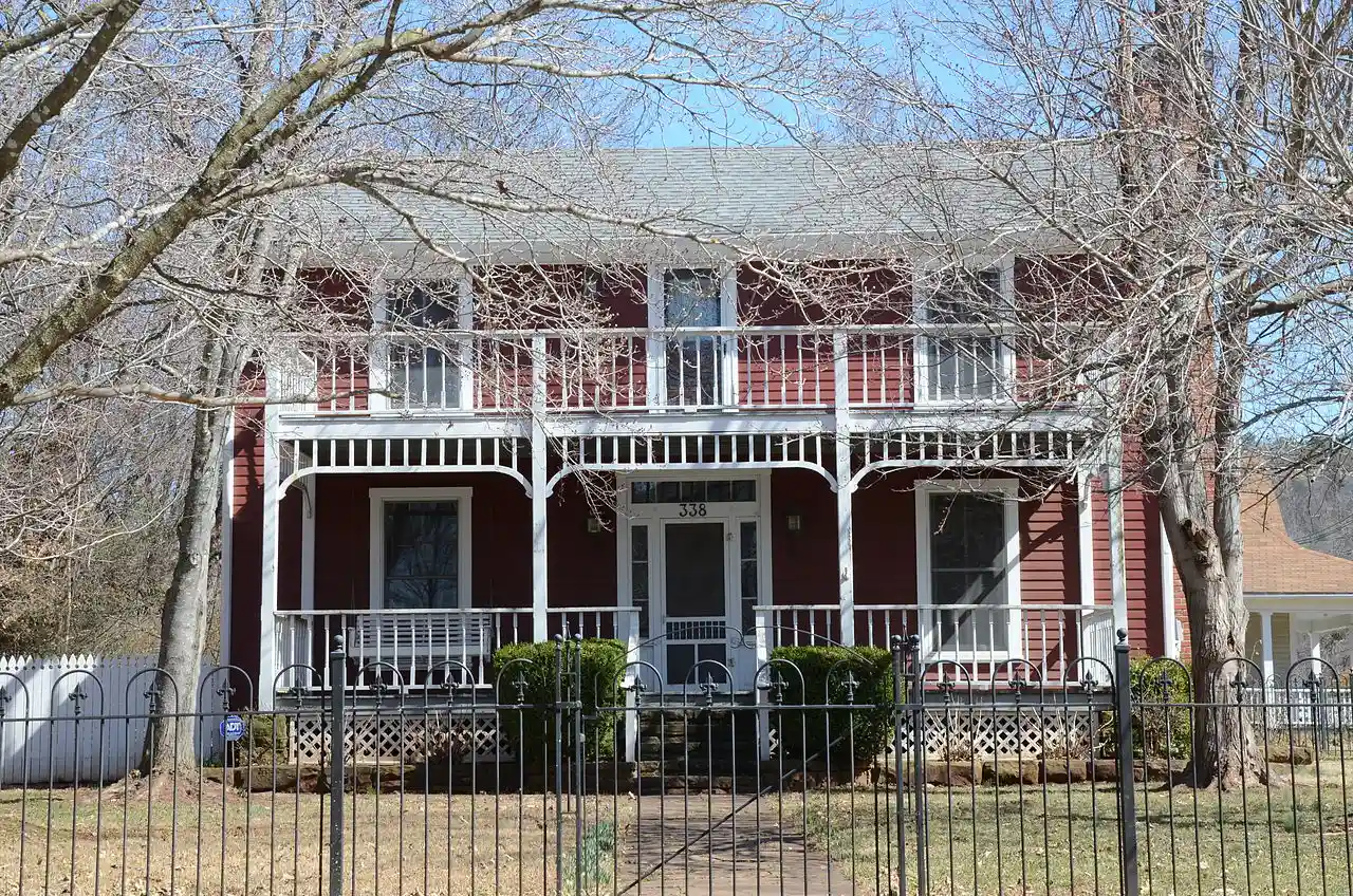 The Wade-Heerwagen House is a historic house at 338 North Washington Avenue. in Fayetteville, Arkansas. It is a two-story wood-frame structure, built in the 1870s in imitation of pre-Civil War houses more typical of late-18th century Virginia. The house is T-shaped, with a front section three bays wide that has a two-story porch extending across its width, and a rear ell added after the house's initial construction. Its interior includes the first bathtub installed in Fayetteville. Read more on Wikipedia