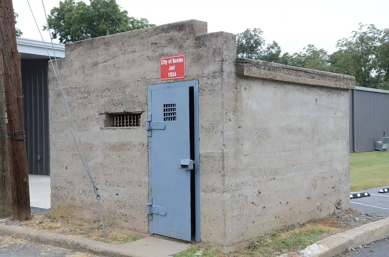 The Beebe Jail is a historic jail building in Beebe, Arkansas. The small single-story concrete structure is set on an alley south of East Illinois Street on the east side of North Main Street. It is distinctive for its slightly rounded concrete roof, with a parapet rising above the front (southwest) facade. The interior has two small cells, each with a barred window, and a small vestibule area. The jail was built as a Works Progress Administration project in 1934. Read more on Wikipedia