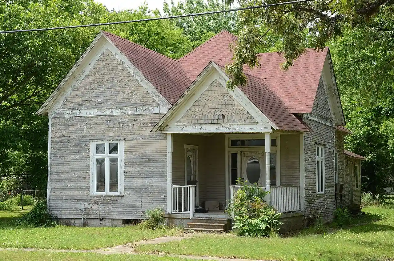 The Booth-Weir House is a historic house on West First Street in McRae, Arkansas. It is a single-story wood-frame structure, with an irregular cross-gable configuration and a projecting gable-roof porch. It is finished in composition shingles and rests on brick piers. Built in 1911 for a railroad fireman, it is one of a few houses in McRae to survive the pre-World War I period, and is typical of vernacular construction of that period. Read more on Wikipedia