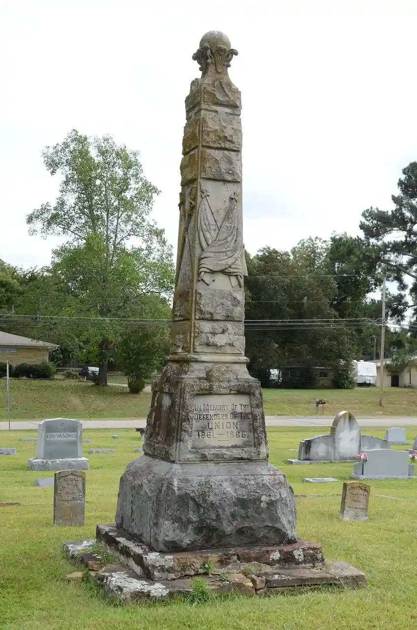 The Grand Army of the Republic Monument of Judsonia, Arkansas is located in the city's Evergreen Cemetery, on Judson Avenue north of its downtown. The monument consists of a rusticated fieldstone base, on which a cubical stone with inscriptions has been set. This is topped by an obelisk-like tapering marble element with a square cross section, which is topped by a sphere adorned with floral detailing. It is set in a square area on each side, in which a number of Union Army soldiers are buried. The monument was placed in 1894 by the local chapter of the Grand Army of the Republic, a Union Army veterans' organization. White County, where Judsonia is located, was divided in the war, with men from the county serving on both sides in the conflict. Read more on Wikipedia