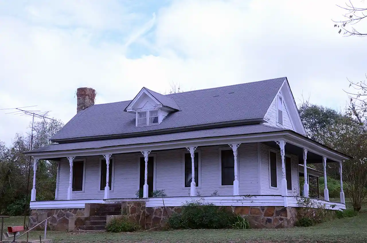 The L.D. Hutchinson House is a historic house on the east side of Arkansas Highway 31 in the small community of Floyd, Arkansas, a short way north of its junction with Arkansas Highway 305. The house is a story wood-frame structure, with a side gable roof and novelty siding. A single-story shed-roof porch extends across the west-facing front, supported by turned posts with decorative wooden bracket at the top. A single gabled dormer projects from the center of the roof, and an ell extends to the rear of the house, giving it a T shape. The house was built in 1914 by L.D. Hutchinson, a local farmer who also operated the local general store and post office. Read more on Wikipedia
