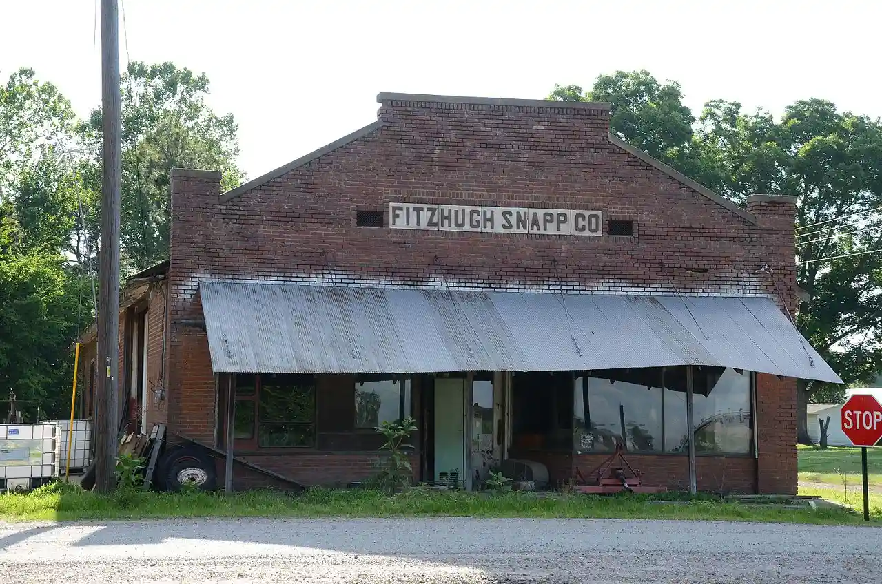 The Fitzhugh Snapp Company is a historic commercial building in rural Woodruff County, Arkansas. It is located at the southwest corner of County Roads 140 and 165 in the northern part of the county, about north of Augusta. It is a single-story structure, built out of load-bearing brick, and finished (as of 2005) with diamond-shaped asbestos shingles. A porch shelters the main (east-facing) facade; it is covered by corrugated metal. A parapet above has a panel identifying the building. Built in 1935, it served the rural cotton-farming community until 1981. Read more on Wikipedia