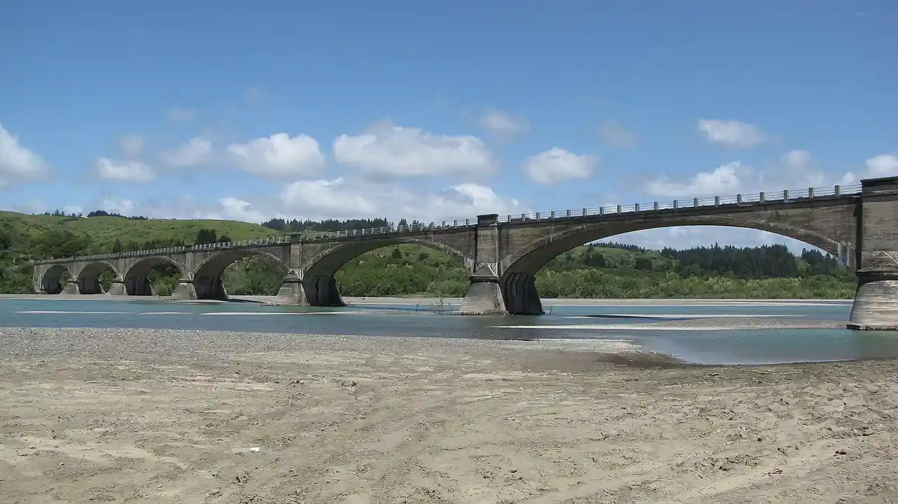 Fernbridge, originally Eel River Bridge, is a concrete arch bridge designed by American engineer John B. Leonard which opened in 1911 at the site of an earlier ferry crossing of the Eel River. Fernbridge is the last crossing before the Eel arrives at the Pacific Ocean, and anchors one end of California State Route 211 leading to Ferndale, California. When built, it was referred to as the "Queen of Bridges" and is still the longest functional poured concrete bridge in operation in the world. Read more on Wikipedia
