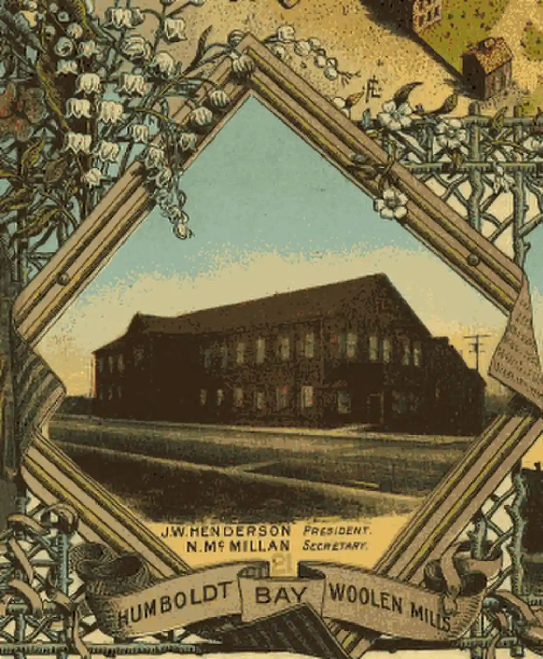 Humboldt Bay Woolen Mill manufactured woolen cloth from 1901 to after World War II. The mill was listed as a National Historic Monument but demolished by the City of Eureka in 1987. Read more on Wikipedia