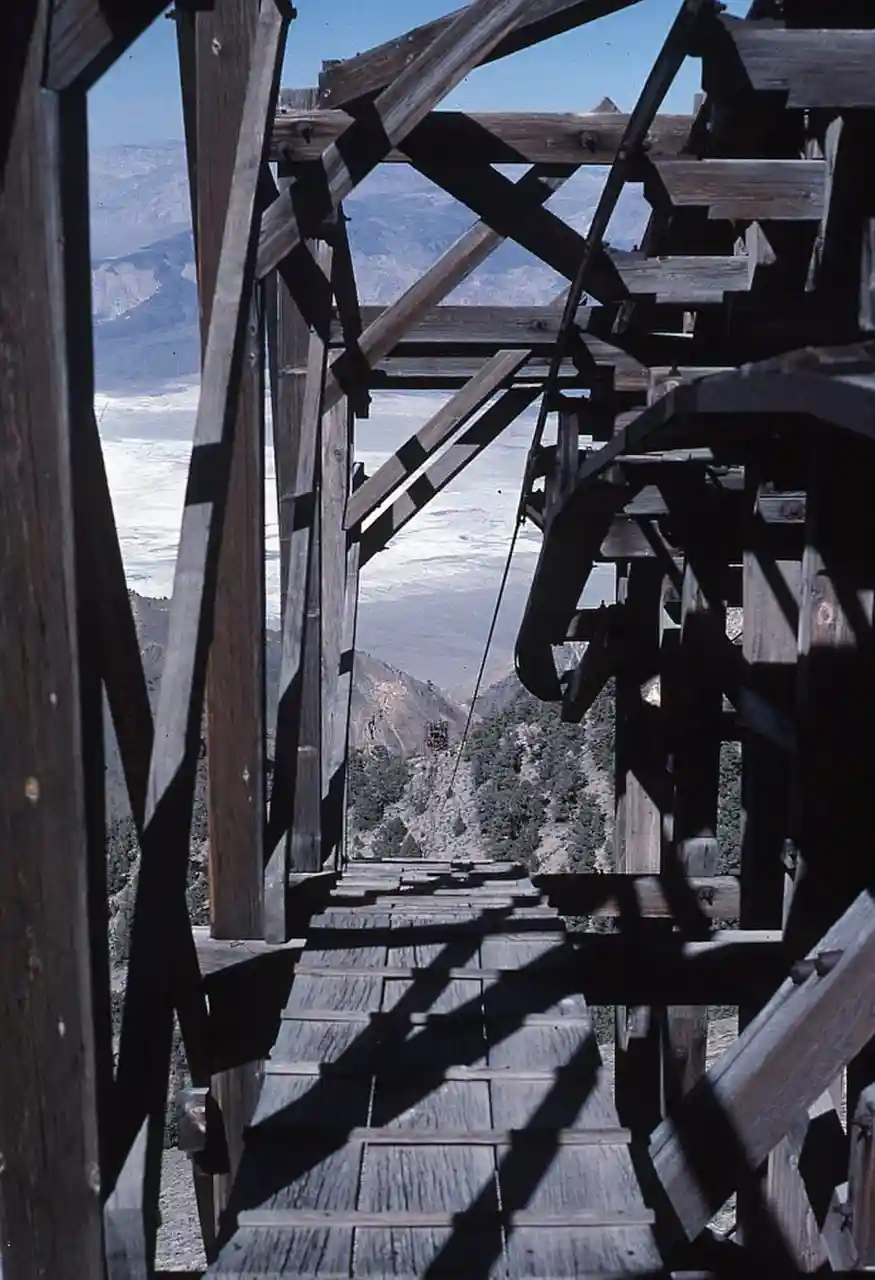 The Saline Valley salt tram is located in Inyo County, California, United States. The electric aerial tramway was constructed from 1911 to 1913 to carry salt from the Saline Valley over the Inyo Mountains and into the Owens Valley. Covering a distance of , it operated sporadically from 1913 to 1935 for four different companies. During its operation, it was the steepest tram in the United States. Read more on Wikipedia