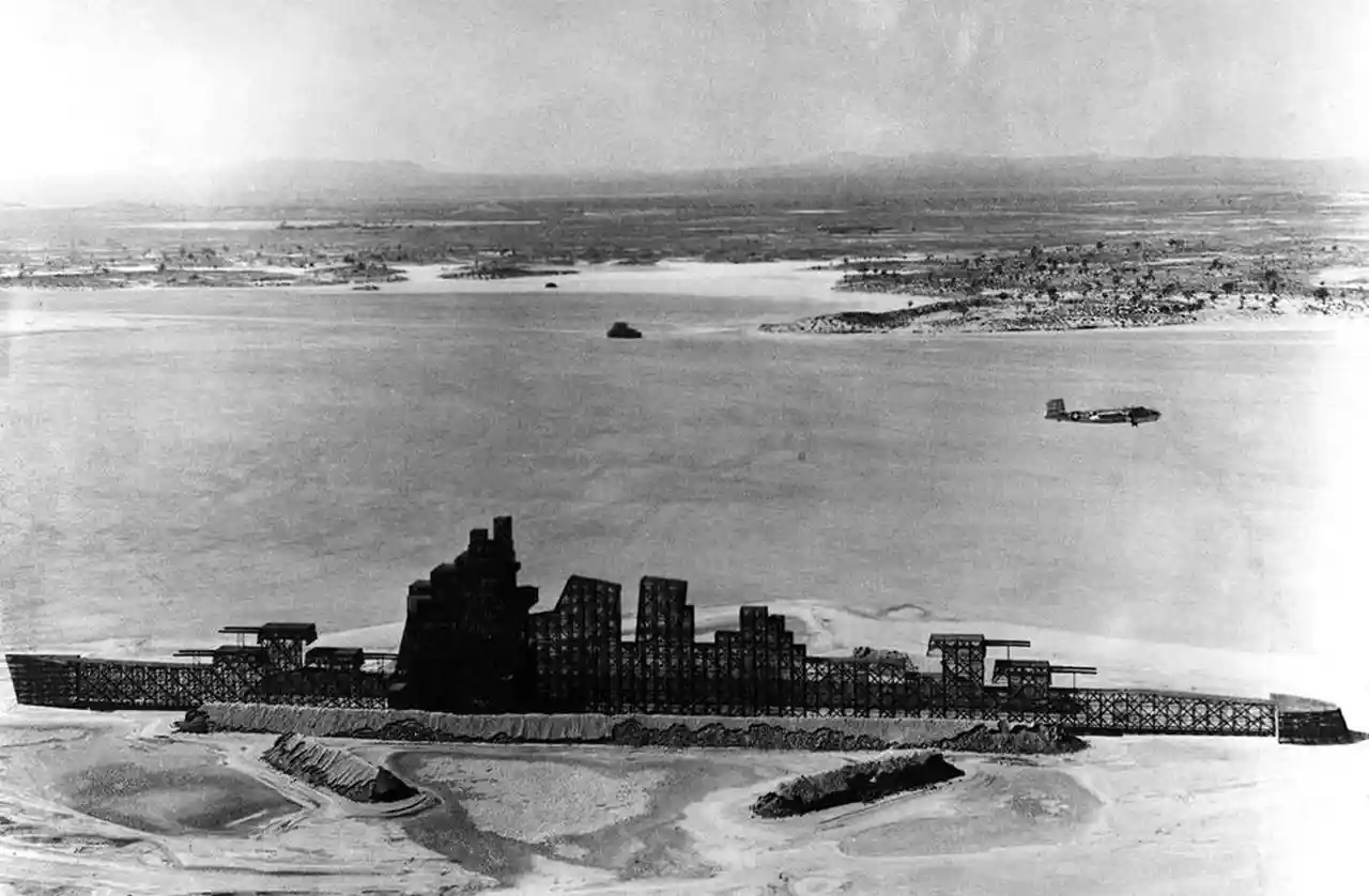 Muroc Maru, officially AAF Temporary Building (Target) T-799, was a replica of a Japanese constructed on the floor of Rogers Dry Lake in southern California during World War II. Used to train bomber pilots and bombardiers in techniques for attacking warships, Muroc Maru remained in place until 1950, when it was demolished. Read more on Wikipedia