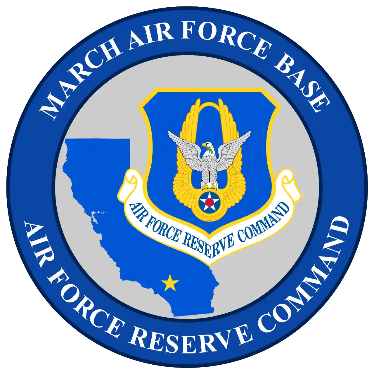 March Air Reserve Base (March ARB), previously known as March Air Force Base (March AFB) is located in Riverside County, California between the cities of Riverside, Moreno Valley, and Perris. It is the home to the Air Force Reserve Command's Fourth Air Force (4 AF) Headquarters and the host of the 452nd Air Mobility Wing (452 AMW), the largest air mobility wing of the Fourth Air Force. In addition to multiple units of the Air Force Reserve Command supporting Air Mobility Command, Air Combat Command and Pacific Air Forces, March ARB is also home to units from the Army Reserve, Navy Reserve, Marine Corps Reserve, California Air National Guard and the California Army National Guard. For almost 50 years, March AFB was a Strategic Air Command base during the Cold War. The facility covers of land., effective 23 May 2019. Read more on Wikipedia