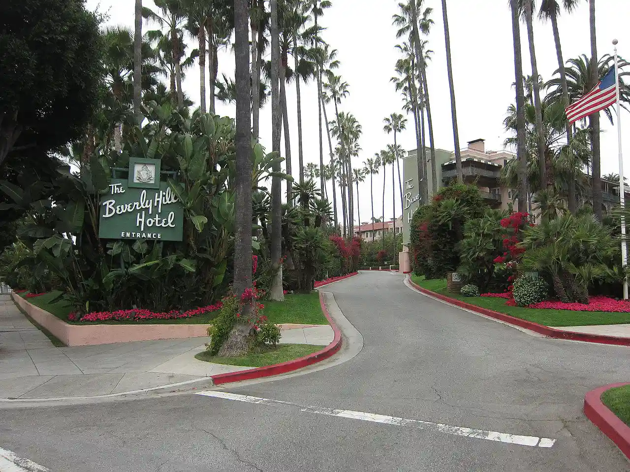 The Beverly Hills Hotel, also called the Beverly Hills Hotel and Bungalows, is located on Sunset Boulevard in Beverly Hills, California. One of the world's best-known hotels, it is closely associated with Hollywood film stars, rock stars, and celebrities. The hotel has 210 guest rooms and suites and 23 bungalows and the exterior bears the hotel's signature pink and green colors. Read more on Wikipedia