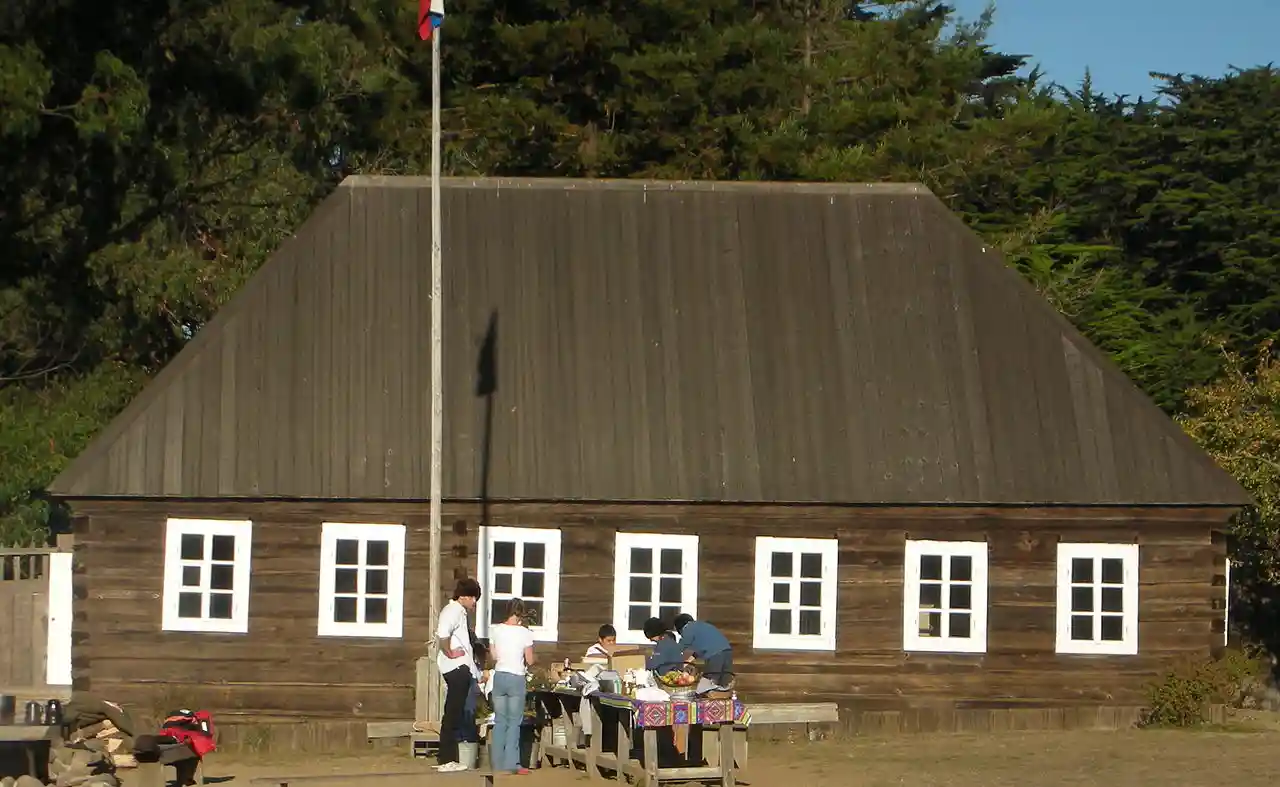 The Rotchev House is a historic house at Fort Ross State Historic Park in the U.S. state of California. Built in 1812, it is the fort's only building to survive from the period of the Russian-American Company's California settlement. It is one of a very small number of Russian-built structures in the United States, and was designated a National Historic Landmark in 1970 as the Commander's House, Fort Ross. (Fort Ross as a whole is also a National Historic Landmark.) Read more on Wikipedia