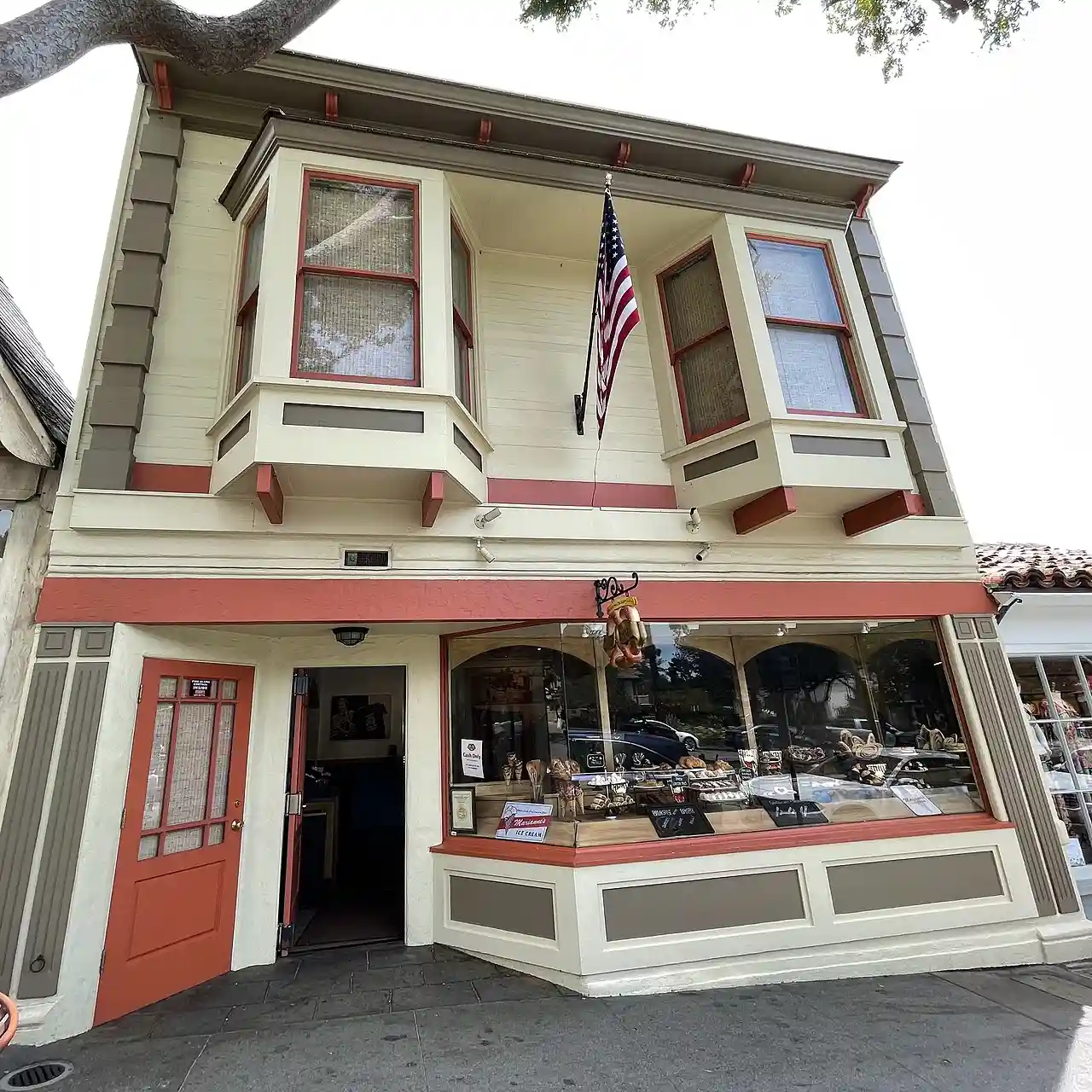 The Schweninger Building (also known as the Carmel Bakery) is a historic mixed-use commercial building in Carmel-by-the-Sea, California. It was built in 1899, by Artie Bowen for Fritz Schweninger. It is an example of Vernacular style. The structure is recognized as an important commercial building in the city's Downtown Conservation District Historic Property Survey, and was nominated and submitted to the California Register of Historical Resources on July 25, 2002. The building has been occupied by the Carmel Bakery since 1899. Read more on Wikipedia
