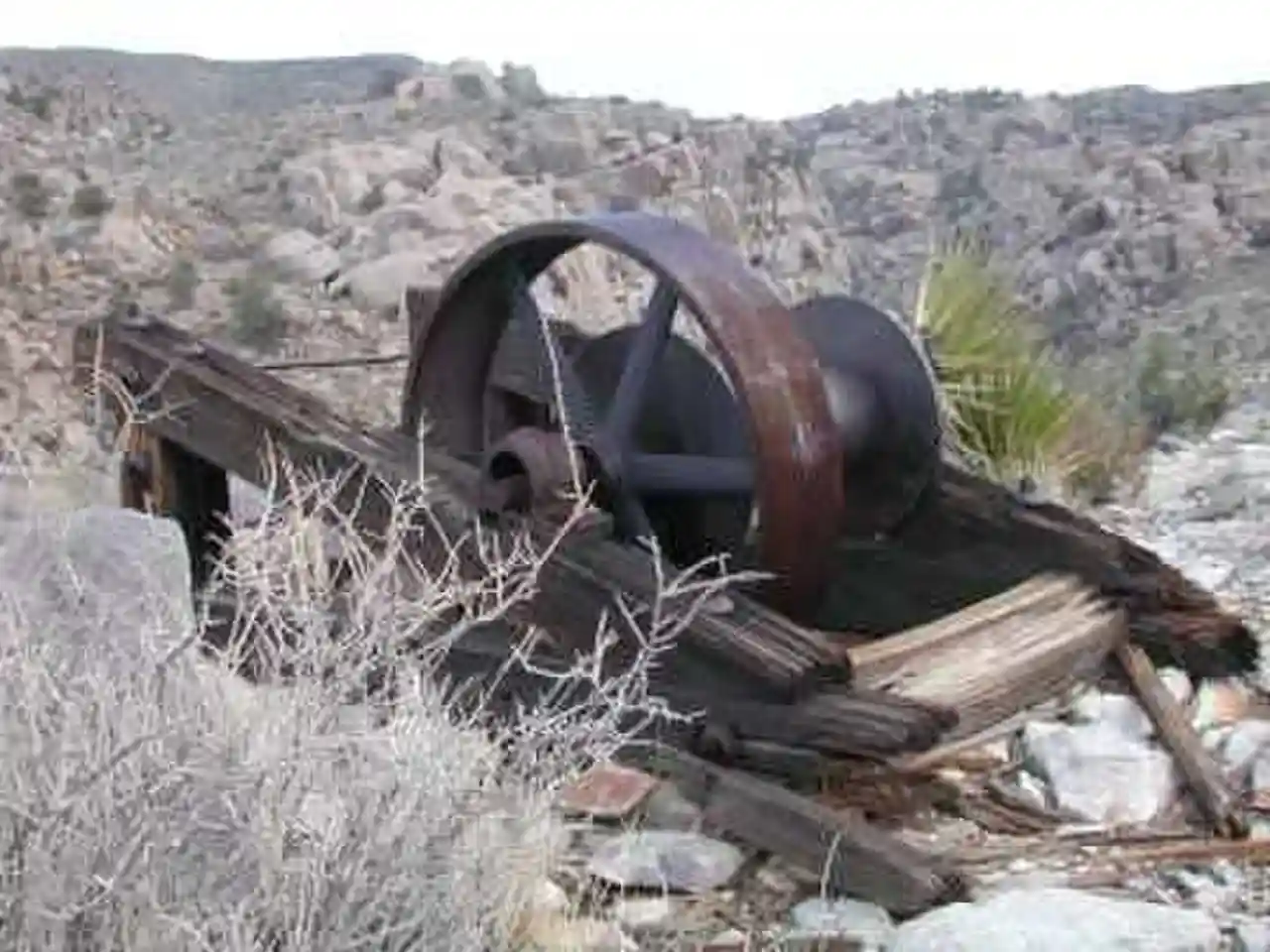 The Desert Queen Mine in the Colorado Desert was one of the more long-lived gold mines of Southern California's high desert region. The abandoned mine is located in Riverside County, California within the boundaries of the Joshua Tree National Park and is included on the National Register of Historic Places. A hiking trail leads to the mine. Read more on Wikipedia