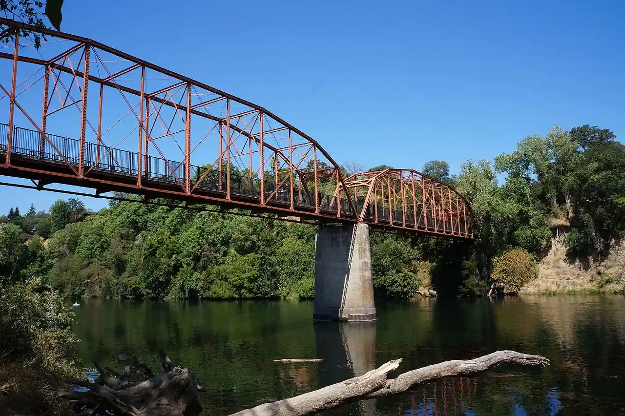 The Fair Oaks Bridge is a truss bridge over the lower banks of the American River, connecting Fair Oaks to the greater Sacramento, California region. The current bridge, built 1907-1909 at a cost of $63,000, is the third bridge at this location. Read more on Wikipedia