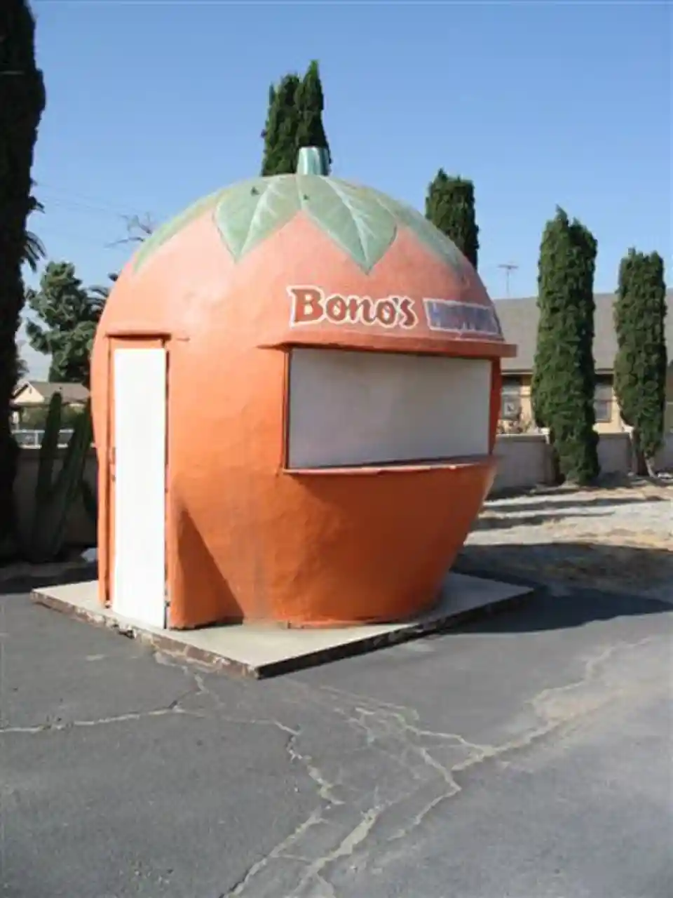 Bono's Restaurant and Deli is a historic restaurant located at 15395 Foothill Boulevard in Fontana, California. The restaurant opened in 1936 to serve travelers on U.S. Route 66, which then passed in front of the site; it originally operated as a produce stand. In 1943, increased traffic on the highway prompted the owners to expand their operations, and the current building was constructed as a full-service restaurant. The restaurant building has a Streamline Moderne design and features red and green stripes promoting its Italian cuisine as well as painted grapevines promoting its wine. As Fontana's Italian immigrant community grew in the 1940s, the restaurant also became a local source of Italian foods previously unavailable in the area. . Read more on Wikipedia