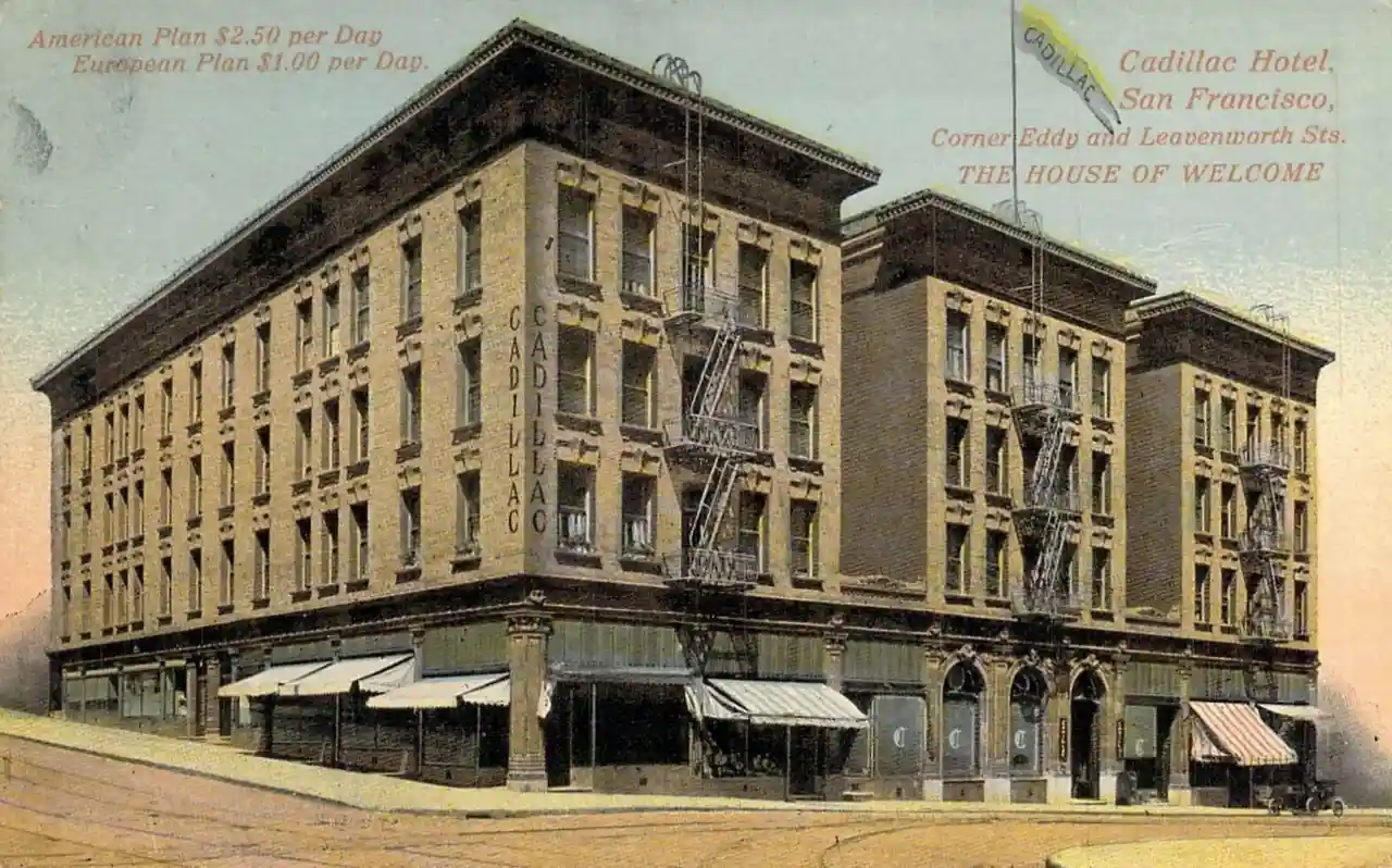 The Cadillac Hotel is a historic building from in the Tenderloin neighborhood of San Francisco, California, U.S.. It was the first non-profit single-residence occupancy (SRO) hotel in the Western United States. Since 2015, the first two floors of the building is the home to the Tenderloin Museum, a cultural history museum dedicated to the neighborhood. It was called the A.A. Louderback Building, and nicknamed "The House of Welcome" during the early 20th-century. Read more on Wikipedia
