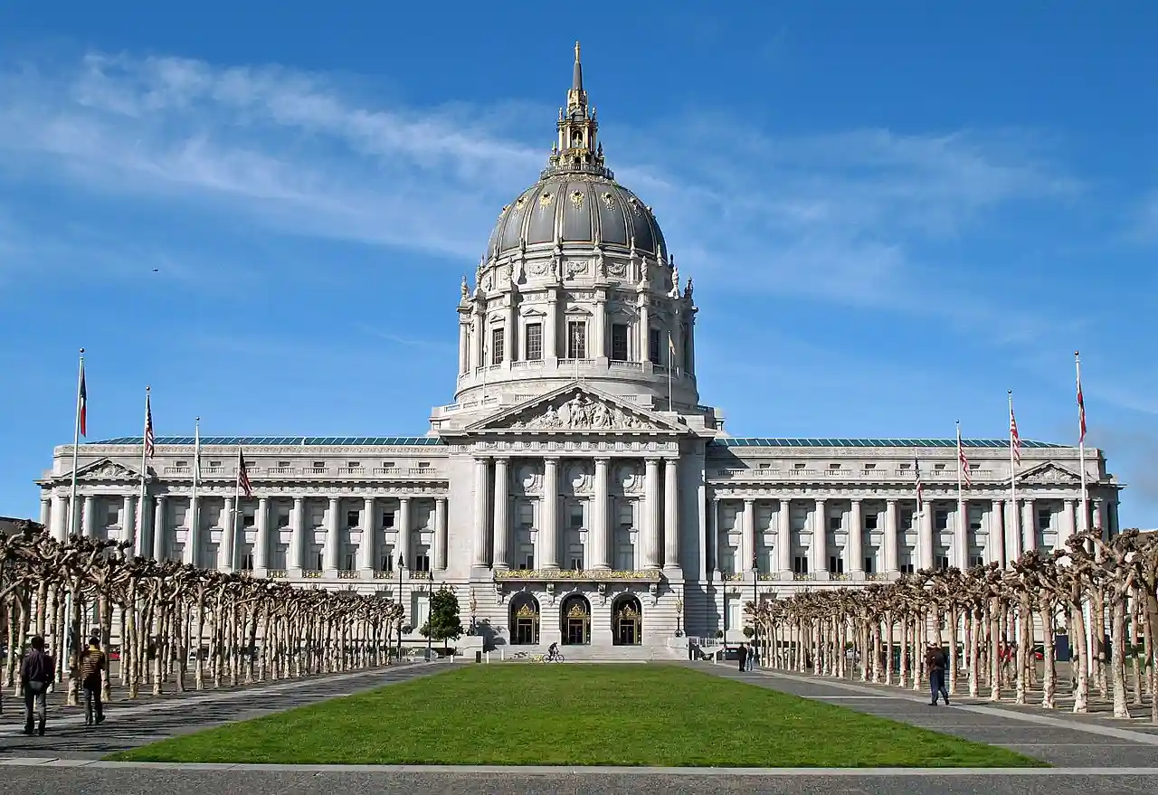 San Francisco City Hall is the seat of government for the City and County of San Francisco, California. Re-opened in 1915 in its open space area in the city's Civic Center, it is a Beaux-Arts monument to the City Beautiful movement that epitomized the high-minded American Renaissance of the 1880s to 1917. The structure's dome is taller than that of the United States Capitol by . The present building replaced an earlier City Hall that was destroyed during the 1906 earthquake, which was two blocks from the present one. Read more on Wikipedia